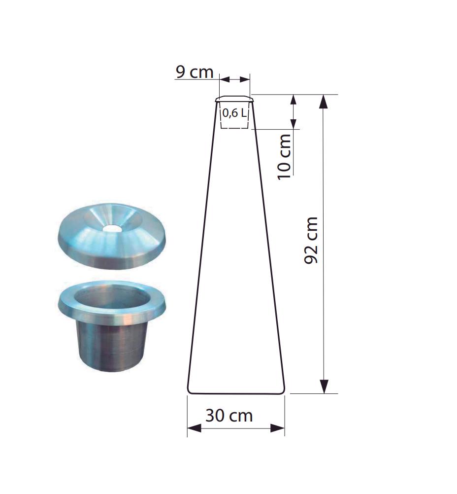 Cenicero de pie fabricado en polietileno con recipiente metálico extraible. Destinado a ser utilizado como elemento decorativo en entradas a hoteles, restaurantes, cafeterías y todo tipo de terrazas.