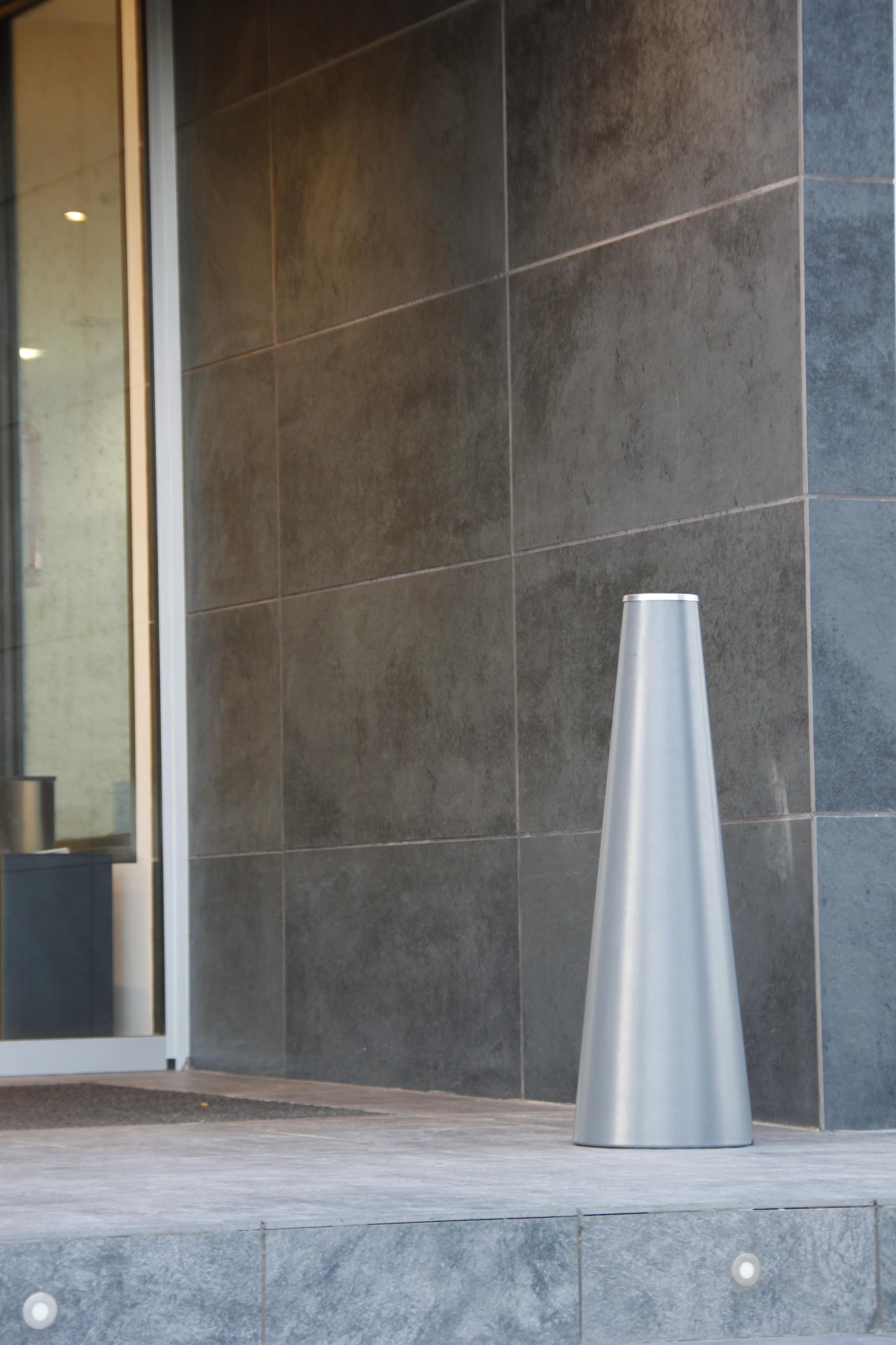 Cenicero de pie fabricado en polietileno con recipiente metálico extraible. Destinado a ser utilizado como elemento decorativo en entradas a hoteles, restaurantes, cafeterías y todo tipo de terrazas.