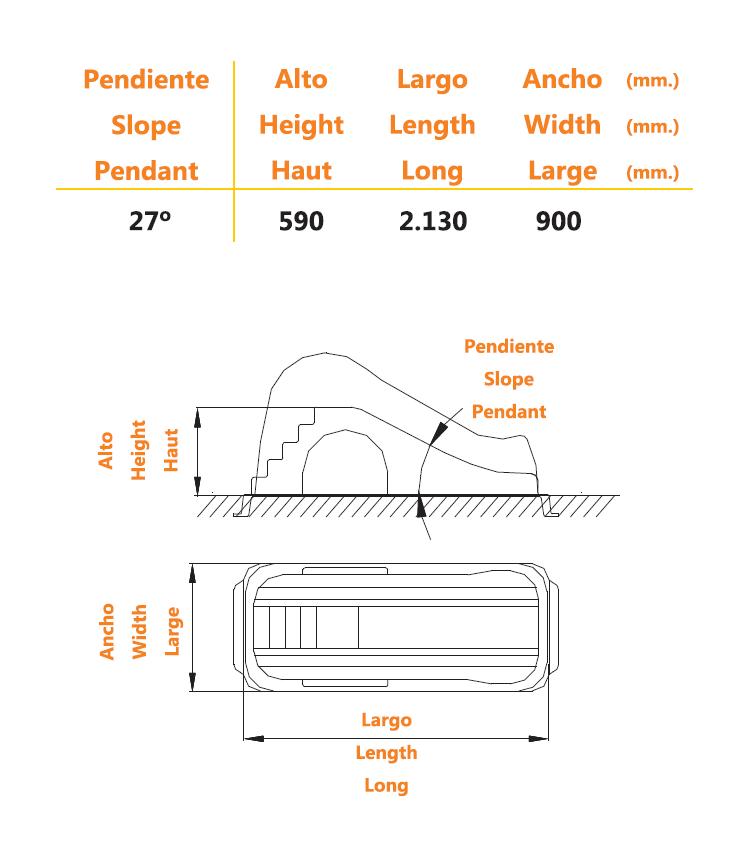 Tobogán extremadamente robusto y seguro, fabricado en una única pieza incluyendo escalera de acceso.
